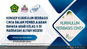 Pelaksanaan konferensi berlangsung melalui platform Zoom dan diikuti oleh para akademisi, peneliti, dan praktisi pendidikan Bahasa Arab dari berbagai institusi dan Negara. Dalam sesi yang dipandu moderator, Ikhwan Nur Rois memaparkan konsep kurikulum berbasis cinta sebagai alternatif pendekatan pembelajaran yang relevan dengan tantangan pendidikan abad ke-21, khususnya di lingkungan madrasah.
