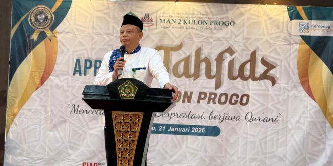 Kulon Progo (Humas MAN 2 Kulon Progo) – Kepala Kantor Kementerian Agama Kabupaten Kulon Progo, H. M. Wahib Jamil, S.Ag., M.Pd., menekankan pentingnya menjaga dan meningkatkan hafalan Al-Qur’an kepada para siswa MAN 2 Kulon Progo saat menghadiri Even Apresiasi Tahfiz MAN 2 Kulon Progo yang mengusung tema “Mencetak Generasi Berprestasi Berjiwa Qurani”. Kegiatan tersebut dilaksanakan di Aula Gedung Pusat Pembelajaran Terpadu (GPPT) Kampus Pusat MAN 2 Kulon Progo, Rabu (21/1/2025).